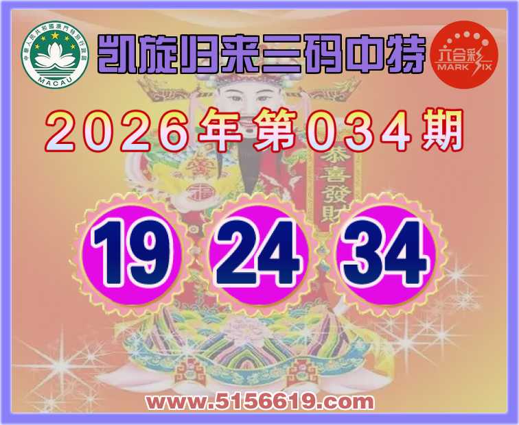 034期:『凯旋归来』 📙三码中特📙【19.24.34】开:00准